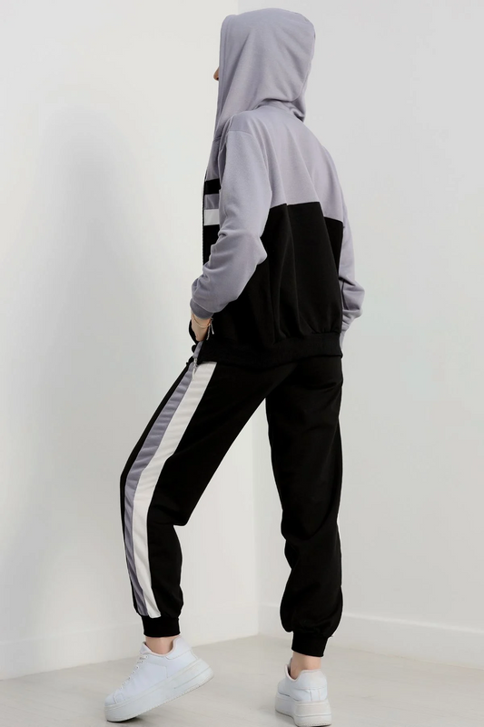 2 iplik alt üst eşofman takımı siyah gri