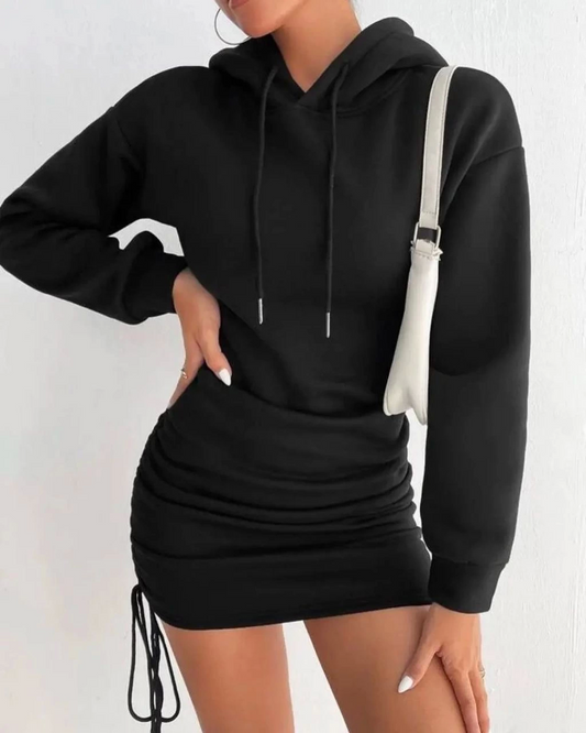 3 iplik şardonlu kompact kapşonlu elbise siyah
