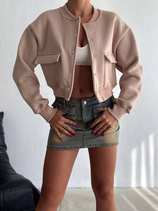 3 iplik şardonlu Önü çıtçıtlı cepli ceket bej f2226